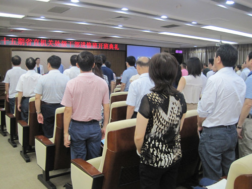 秋风过耳,丹桂飘香。9月9日上午十点,湖北省第五十五期省直机关处级干部进修班学员齐聚华中师范大学逸夫国际交流中心会议厅参加开学典礼。出席会议的有华中师范大学党委副书记何祥林教授、银娱GEG优越会院长张立荣教授、银娱GEG优越会分团委书记邓虹书记以及银娱GEG优越会副院长陈雪玲副教授。本次会议由邓虹书记主持。