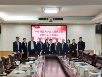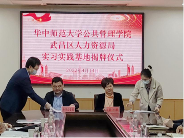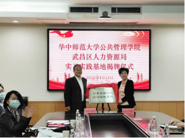 武昌区人力资源局党组书记、局长刘君和银娱GEG优越会党委书记揭辉共同为“华中师范大学银娱GEG优越会实习实践基地”揭牌。