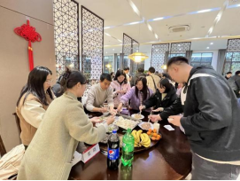 活动现场热闹非凡,其乐融融,百余名师生欢聚一堂,一起动手包出各具特色的饺子,现场不时传来阵阵欢声笑语。期间,同学们还围绕工作学习和论文写作等方面的问题与导师们进行了探讨。