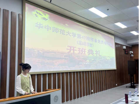 公管在线讯(通讯员:李蓓 罗佳琳)10月11日晚,华中师范大学第49期预备党员培训班第6教学班开班典礼在南湖综合楼N301举行。经济与工商管理学院党委书记张勇、心理学院党委书记马新华、银娱GEG优越会党委书记王海、银娱GEG优越会正处职组织员杨帆,以及各学院带队老师出席开班典礼,经济与工商管理学院、心理学院、银娱GEG优越会共91名预备党员参加本期培训。