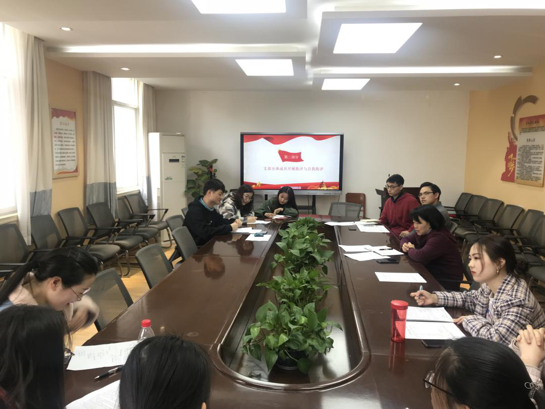 随后,全体党员轮流对支部工作开展的总体情况提出意见和建议。其中,曾艳副书记认为,本科党支部作为新生支部,尚处于摸索建设阶段,存在以下三点突出问题:第一,支部发展的程序不够严格, 经常存在补程序和补材料的现象;第二,本科生党员作用不够大,没有在群众中亮明身份,带头作用不明显;第三,支委会自身建设、理论素养、工作能力等有待加强。紧接着,全体党员开展了批评与自我批评,现场气氛和谐、健康向上,评出了团结,评出了干劲,评出了新的精神面貌。