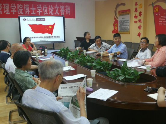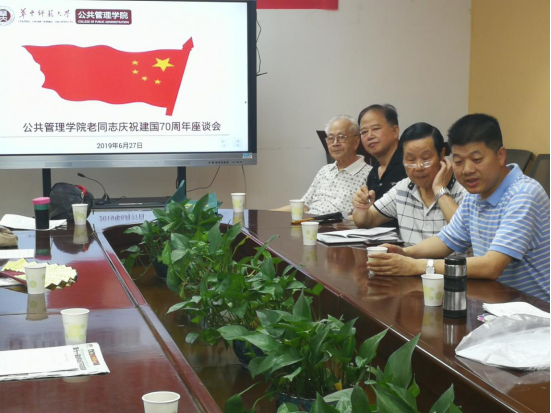 公管在线讯 (通讯员 陈露)6月27日上午,我院在二楼会议室召开了老同志庆祝建国七十周年座谈会。院长卢新海及近二十位退休老同志齐聚一堂,共话七十华诞,畅谈今昔所见所闻所感。会议由院老协负责人谢军伦老师主持。