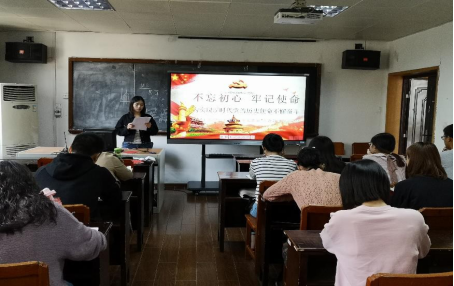会议伊始,张欣欣同志以习近平同志的讲话为切入点,带领支部同志深入学习了习近平新时代中国特色社会主义思想。紧接着,进入支部书记讲党课环节。张欣欣同志以“不忘初心,牢记使命——为实现新时代党的历史使命而不懈奋斗”为主题,分别从四个方面进行了讲述:即初心使命须臾不能忘;用党的创新理论照亮初心、指引征程;在自我革命中把党锤炼锻造得更加坚强有力;始终把人民放在心中最高位置。
