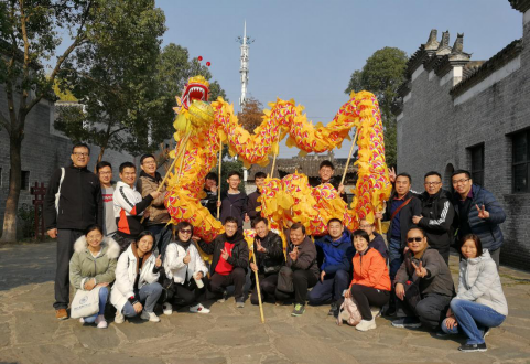 在激烈的拓展活动之后,大家一同参观了张公山寨的收藏品和异地重建的一些徽派建筑,大家无不惊叹于古人的美学设计和精彩工艺。在参观过程中也兴致满满参加了舞龙等体验活动。