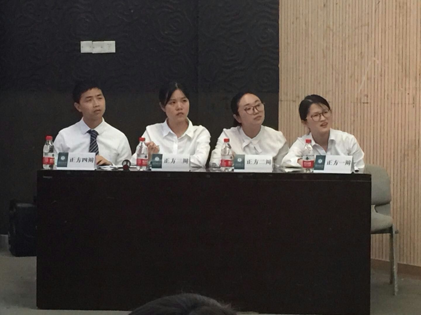 对战环节中,一辩开篇立论,沉着冷静;二辩灵活机智、脉络清晰。对战双方进行一对一攻辩,相互提出尖锐问题,比赛的气氛渐渐升温;自由辩论过程中,辩手们引经据典、旁征博引,运用大量的理论依据,把整场辩论赛引入高潮。尤其是我院辩手,慷慨陈词、言辞激昂,博得了观众的阵阵掌声。总结陈词之后,评委们根据每个辩手的表现及整组的配合进行点评,辩手们虚心接受意见和建议。主持人对整场比赛进行总结之后,本次比赛圆满结束。