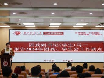 团委副书记(学生)马一汇报2024年团委、学生会工作要点,并表示在大家共同的努力下,未来团委、学生会将继续秉持“服务师生、促进成长”的宗旨和“公管团学,永远团结”的理念,向光而生、逐光而行。