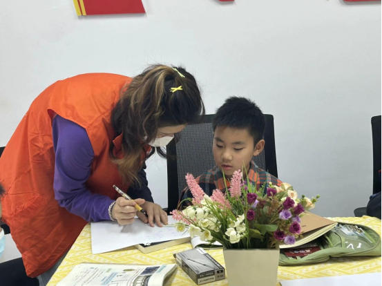 上午八点四十五分,志愿者们提前到达活动现场与社区和公管青协工作人员进行对接,了解社区小孩基本情况和现场注意事项,并布置活动现场。准备工作结束后,“华心相连”社区课堂主题志愿服务活动正式开始。在家长的带领下小朋友们背着书包抵达保安社区党员群众服务中心,并在志愿者的引导下进行签到。小朋友们到达后,志愿者迅速进入工作状态,在小朋友完成作业的过程中,志愿者及时向碰到难题的小朋友提供帮助,耐心询问其疑难所在并悉心辅导,帮助他们解决学习中碰到的疑惑和难题。