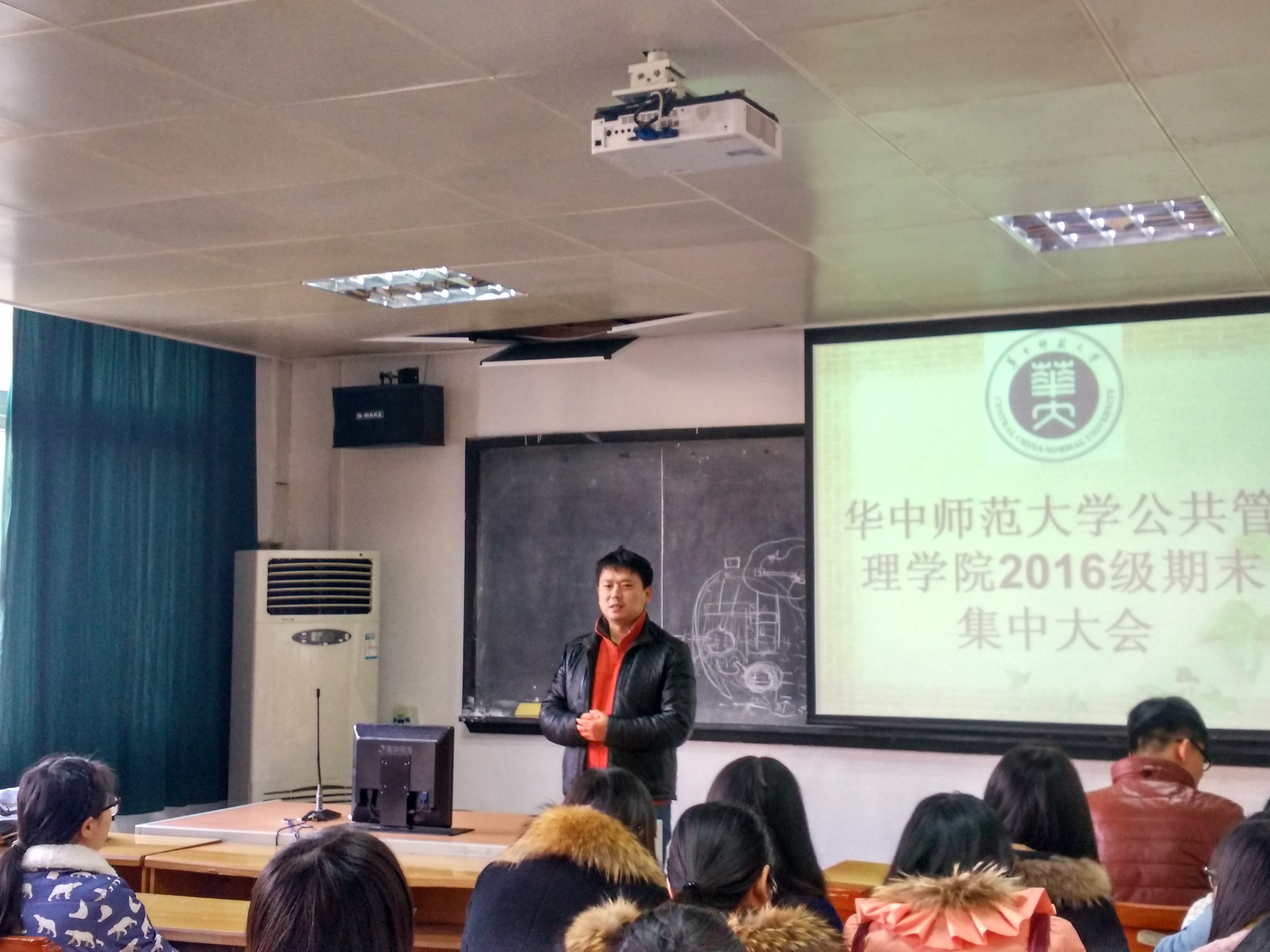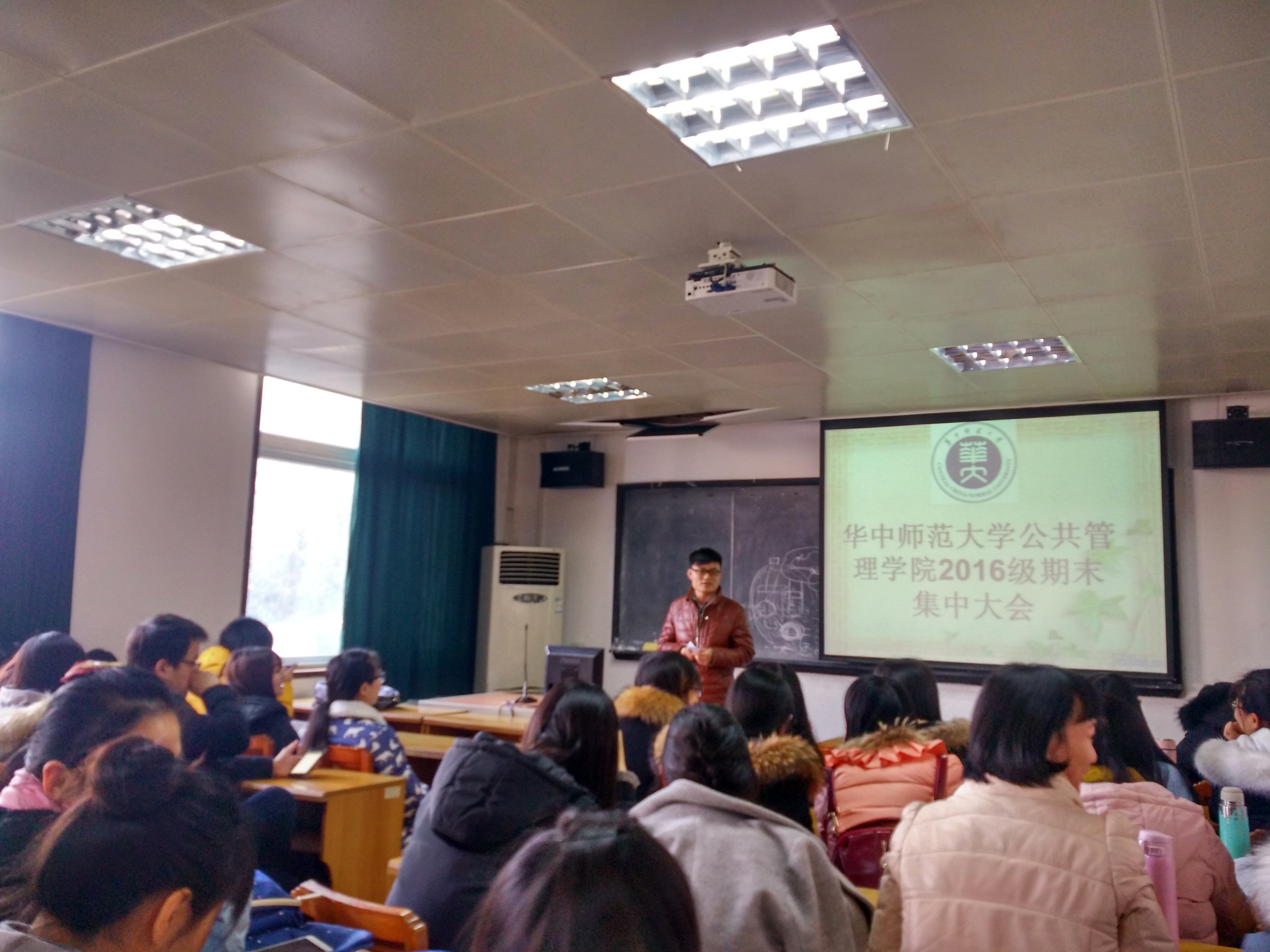 最后兼职辅导员童志阳学长对两位老师的讲话总结补充,至此,2016级期末集中大会顺利结束。