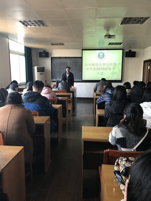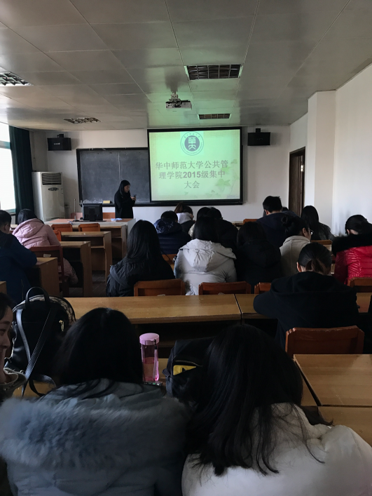 本次期末集中大会由年级研会主席姜琳主持,党委书记李家文、副院长徐增阳、教学秘书欧阳老师、辅导员魏老师、兼职辅导员童志阳学长出席了本次集中大会,并在会上赠予2015级同学新年祝福。
