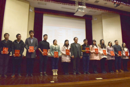 副校长黄永林宣读了《关于表彰华中师范大学2015—2016年度学生先进集体和先进个人的决定》,校党委书记马敏、副校长蔡红生、彭南生分别为学生先进集体、先进个人代表颁奖。我院优秀研究生余海强、俞航、岳翠朋、熊冰作为受表彰代表上台领奖。
