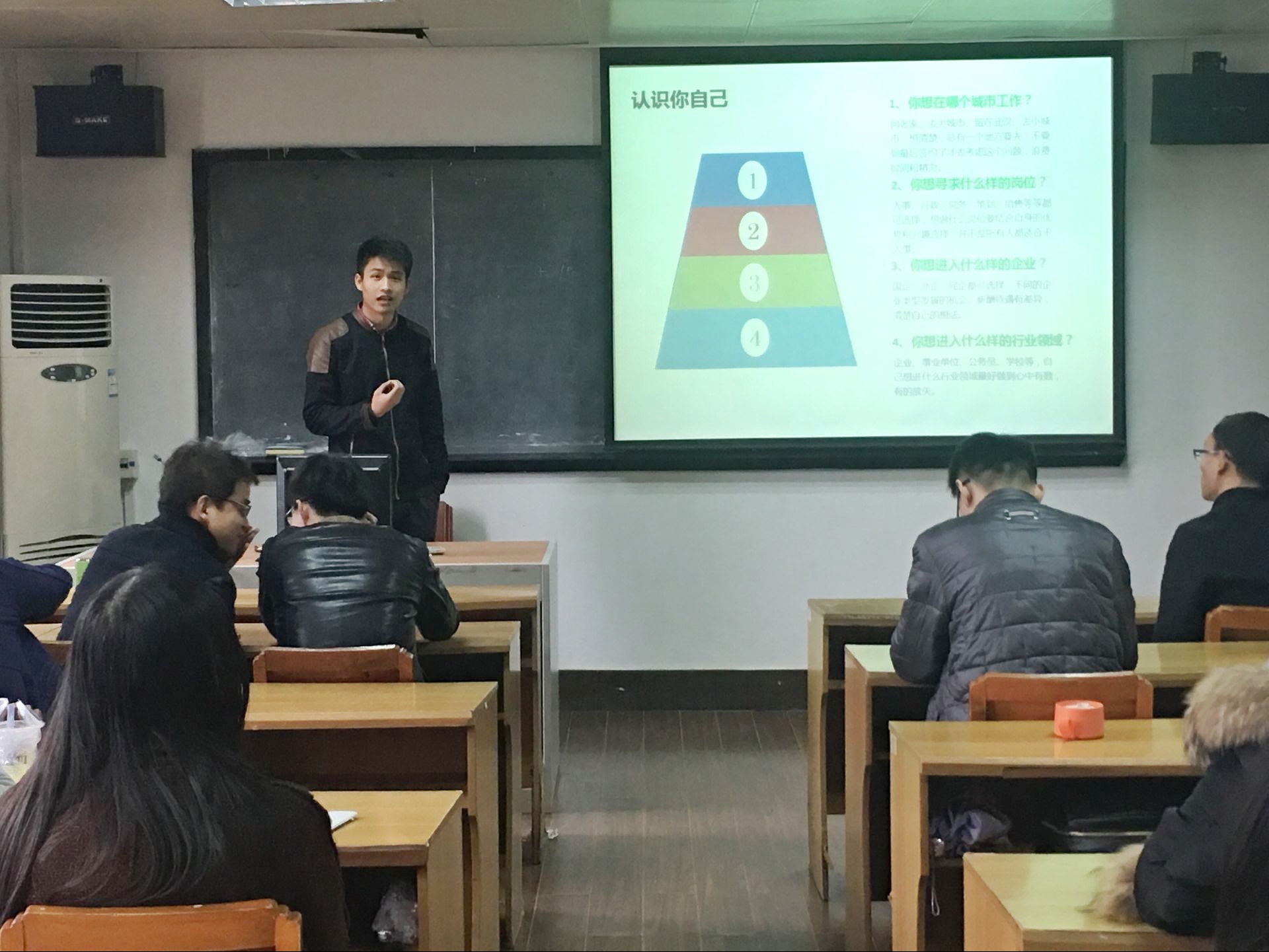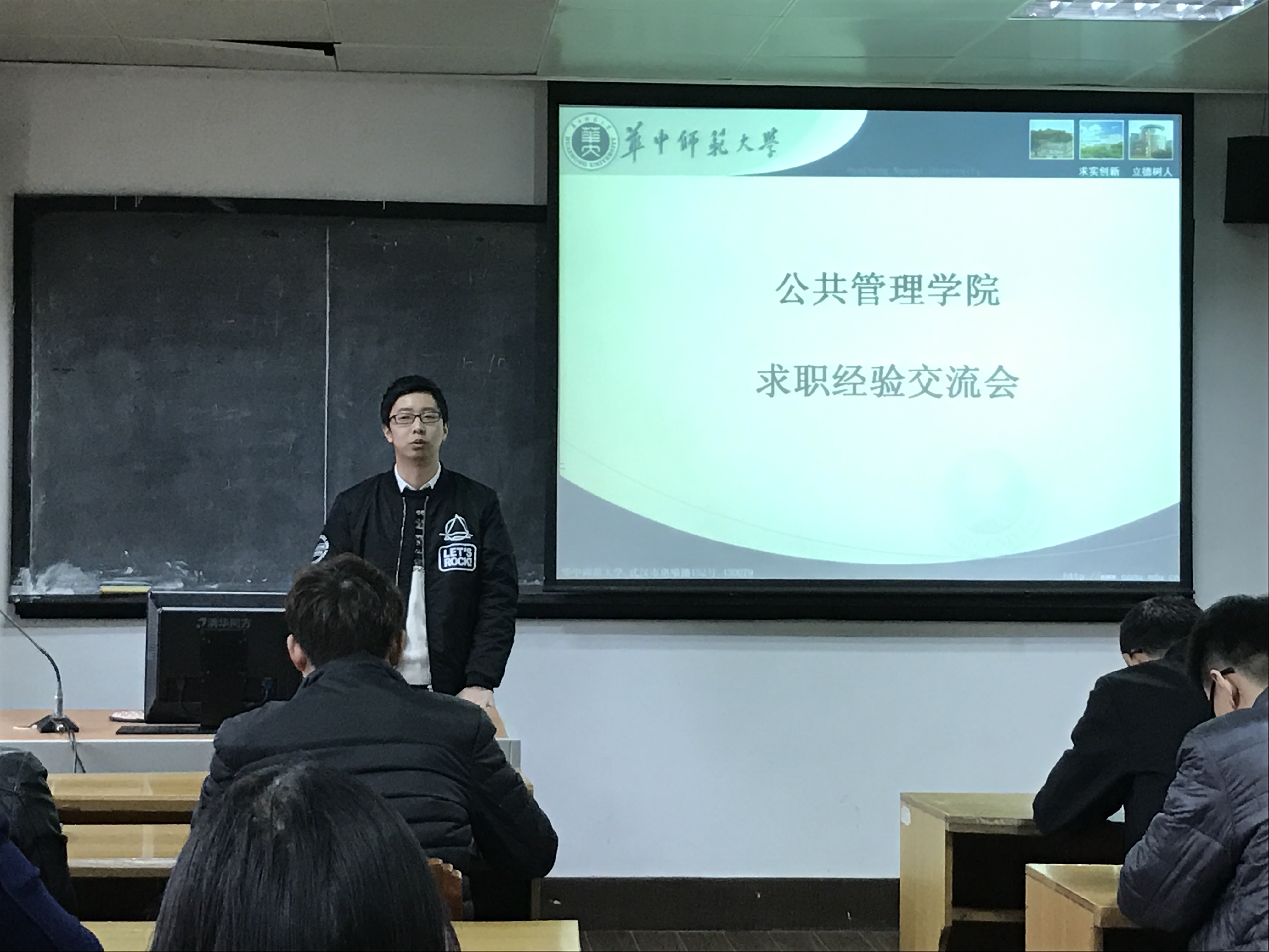 银娱GEG优越会研究生讯(通讯员:熊梦莹) 3月13日上午9时,我院学术部在管院419教室举办了一场求职经验交流会,并邀请了李双、余海强、童志阳、谭兴、岳翠朋等五位研三学长同大家分享交流求职经验。研究生辅导员魏寅出席本次交流会并发表讲话,他希望同学们把握这次宝贵的交流机会收获求职知识。