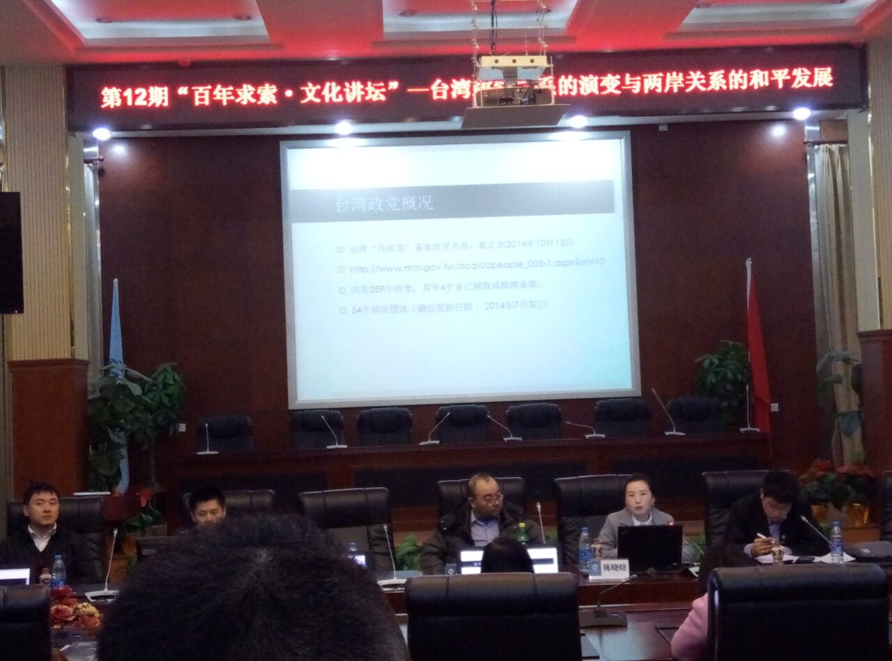 银娱GEG优越会研究生讯(通讯员:徐杰智)3月15日晚7点,由华中师范大学政治与国际关系学院研究生会、银娱GEG优越会研究生会承办,马克思主义学院研究生会和法学院研究生会参与协办的第12期百年求索·文化讲坛在模拟联合国实验室举行。集美大学马克思主义学院讲师、厦门大学台湾研究院政治学理论博士陈晓晓老师为我校学子带来了一场题为“台湾政党体系的演变与两岸关系和平发展”的精彩讲座。