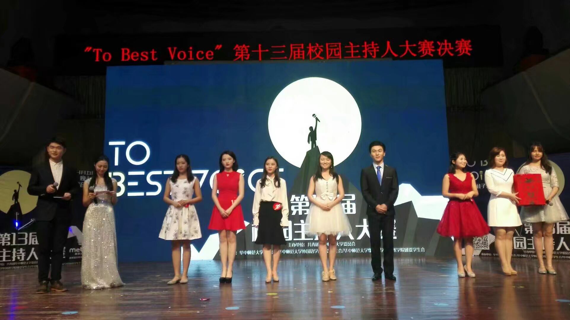 公管在线讯(通讯员 林曦)4月5日晚,华中师范大学第十三届校园主持人大赛决赛在音乐厅举行。外国语学院党委书记李云,校团委书记杨臣,物理科学与技术学院党委副书记吴建成,外国语学院党委副书记张静以及校团委副书记陈娟等多位领导出席本次活动。校团委副书记张静,校宣传部校报主编、国家级普通话测试员程秀丽,湖北广播电视台资深节目主持人曹芯,武汉理工大学广播台雷峻以及2010级校广播台台长、湖北之声主持人、校话剧《恽代英》中恽代英扮演者叶建恩担任本次大赛的评委。
