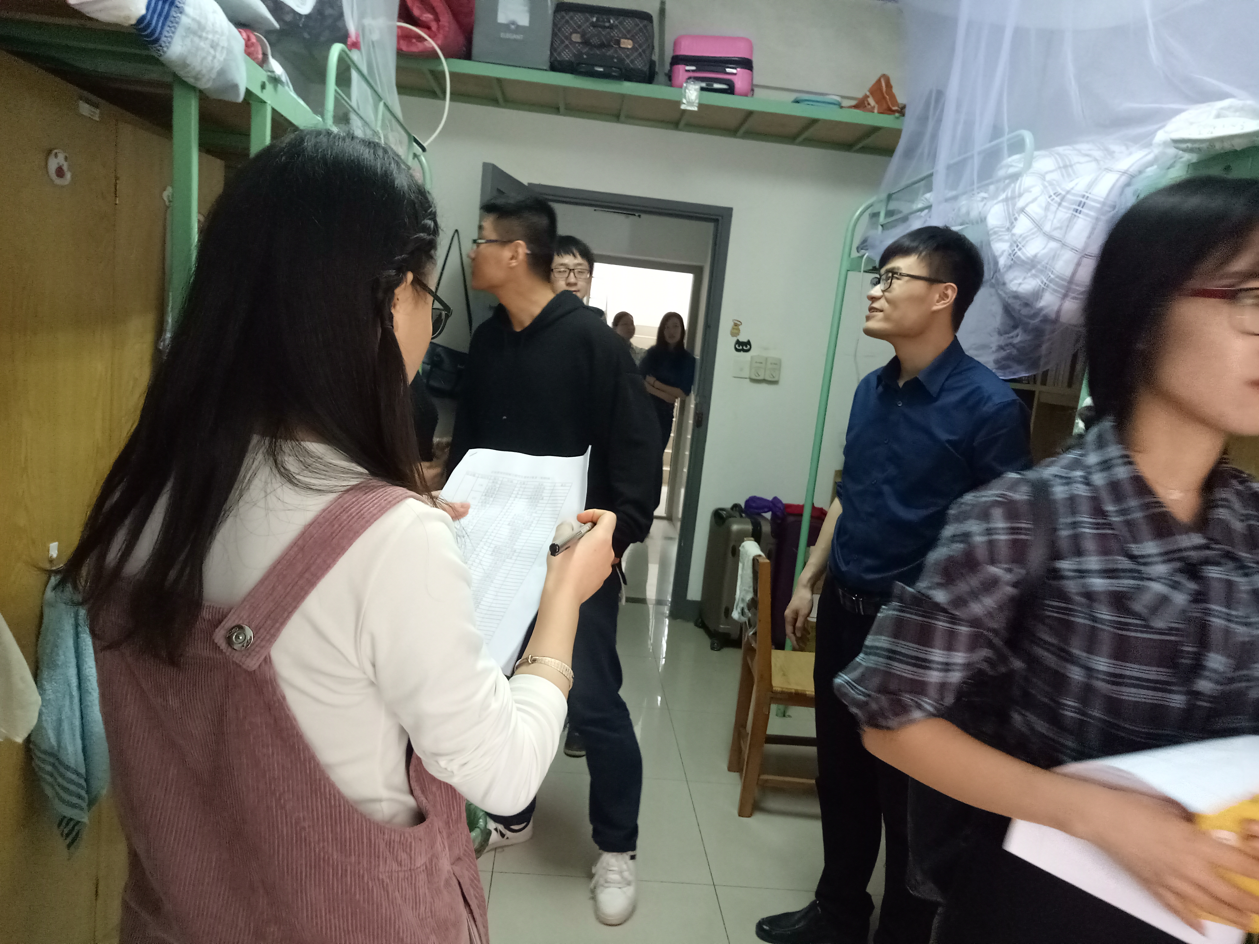 为了加强学生宿舍管理,规范学生行为,同时也为了配合学校宿舍检查的顺利进行,2017年4月18日中午,我院研究生辅导员魏寅老师、兼职辅导员童志阳学长、研究生会主席团及生活部成员对我院的研究生宿舍进行了全面的检查。