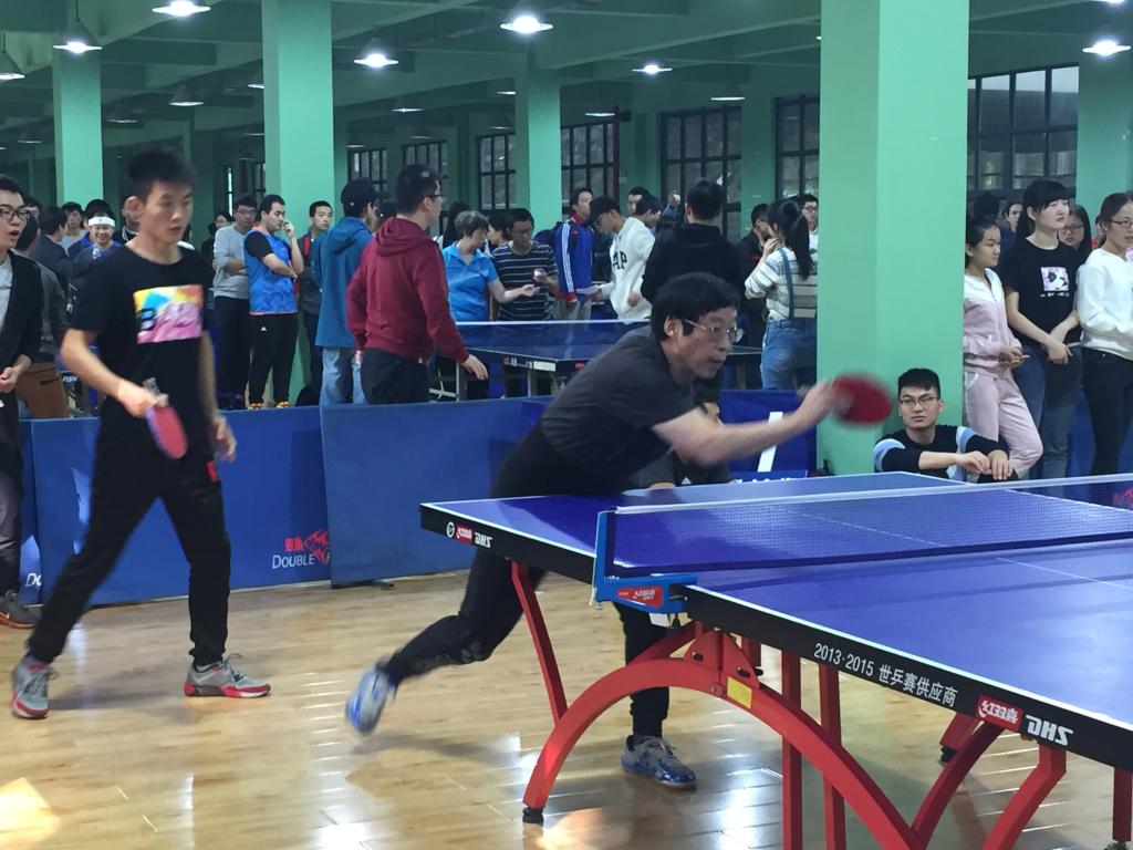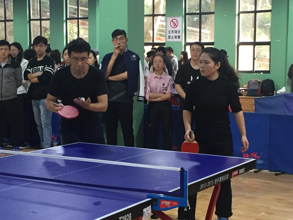 比赛中,各院参赛的选手都势均力敌地相互切磋着,直拍、横拍、扣球、旋转球等目不暇接,比赛中还不时传出热烈的喝彩声,兴奋的“好球”声一阵接着一阵。我院老师和学生为了参加本次比赛,提前好几天就在训练、磨合,所以在比赛中不仅球技得到了很大的提升而且配合得也相当默契,中场休息时老师们还不忘教授大家打球技巧,鼓励大家继续加油。