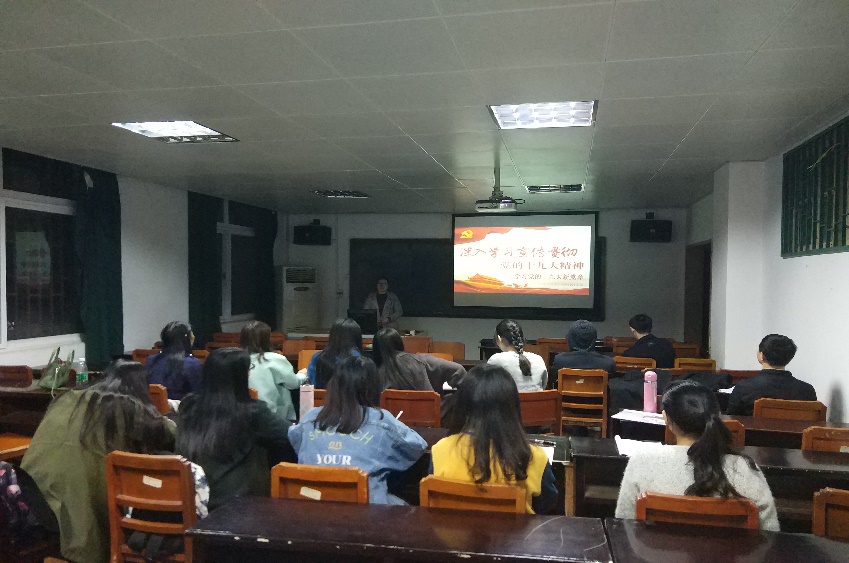 (银娱GEG优越会研究生讯 通讯员:周琦尧) 2017年11月7日,由我院研究生会组织,各个支部开展的我院研1601支部十九大专题学习一——新党章学习在管理学院三楼会议室展开,此次学习的主题是十九大通过的新党章学习,由支部书记王娟同志进行讲解。