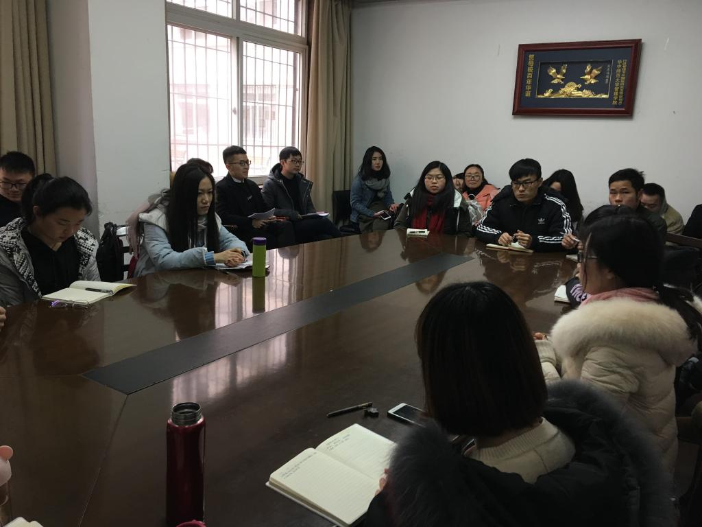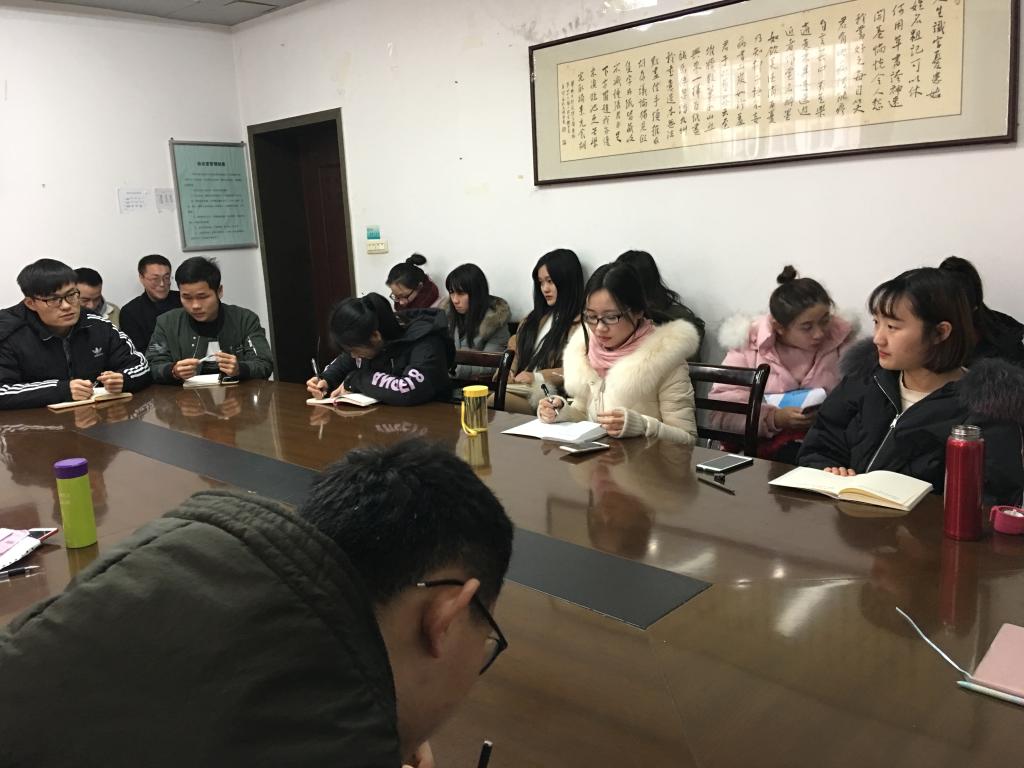会议伊始,魏老师回顾了本学期研会的工作,向院研会在全校研会考核评比中获得第四名的佳绩表示祝贺,并感谢研会各位成员在过去一个学期所做的工作,勉励各成员在新的一年里要继续努力,积极贯彻十九大精神,打造让师生满意的服务型研会队伍。随后,研会各部门分别总结汇报这学期部门工作情况,分享了彼此的所思、所感、所悟。会议最后,胡丹学姐做总结发言,希望各部门能够精诚合作、团结一致,做好公管学院的品牌建设。此次会议气氛融洽,各部门积极发言,第八次例会顺利结束。