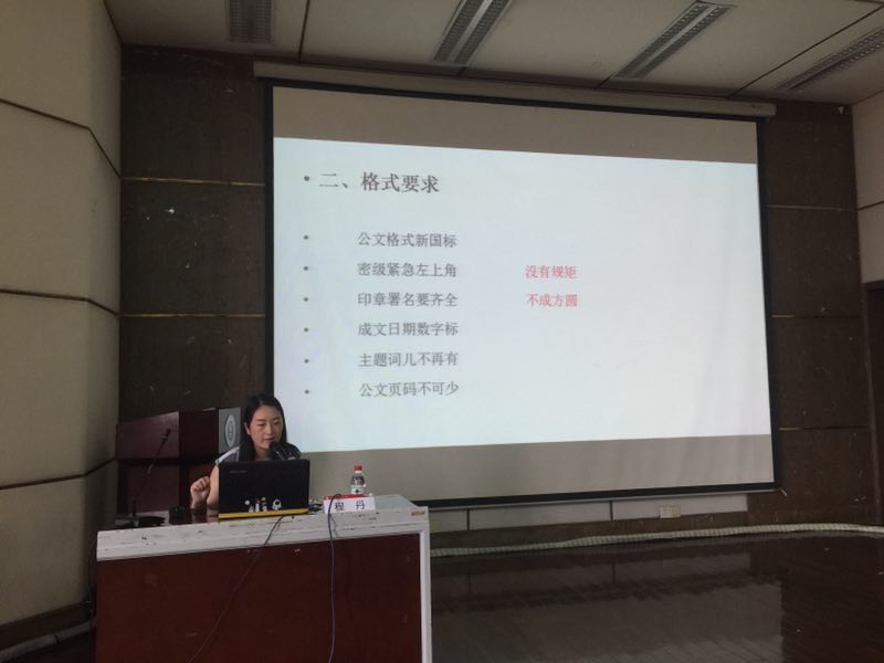 程副主任首先开门见山,在第一部分就提出了公文写作的相关要求——严把7关,即“发文关、政治关、政策关、法律关、内容关、体式关、文字关”;紧接着,为了让同学们更好地牢记公文写作的技巧和注意事项,程副主任对昨天上课提及的公文写作的格式要求做出强调,“没有规矩,不成方圆”;此外,程副主任对公文的文风要求、方法要求、惯用语要求等提出来自己的意见建议;第二部分程副主任对公文写作的常见错误例如文种错误、标题错误、序号错误、主选机关错误等进行了深入剖析;最后程副主任对如何写好一篇公文进行具体案例教学,加深了同学们对于公文写作的理解。