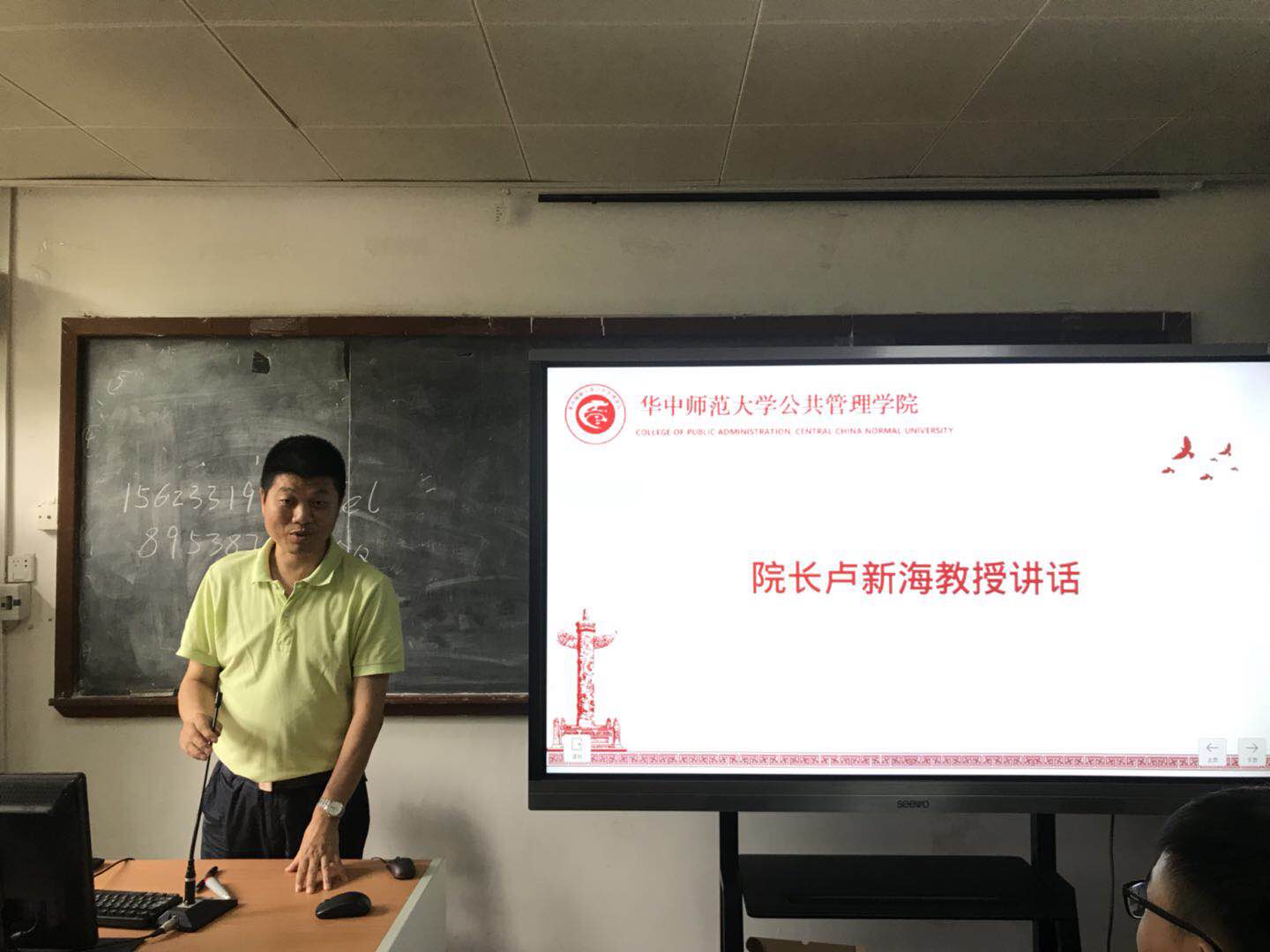 院长卢新海教授对2018级7名博士研究生、60名硕士研究生表示了热烈的欢迎,他从研究生和本科生学习方法的区别、如何掌握科学有效的研究方法以及学院2018级研究生毕业新要求这三个方面向大家进行了细致的讲解,他特别强调了研究生期间自主学习、主动学习的重要性,希望大家熟练掌握公共管理学科的研究方法,提高学习效率,多参加导师的科研项目,积极发表科研成果,做好研究生的本分。