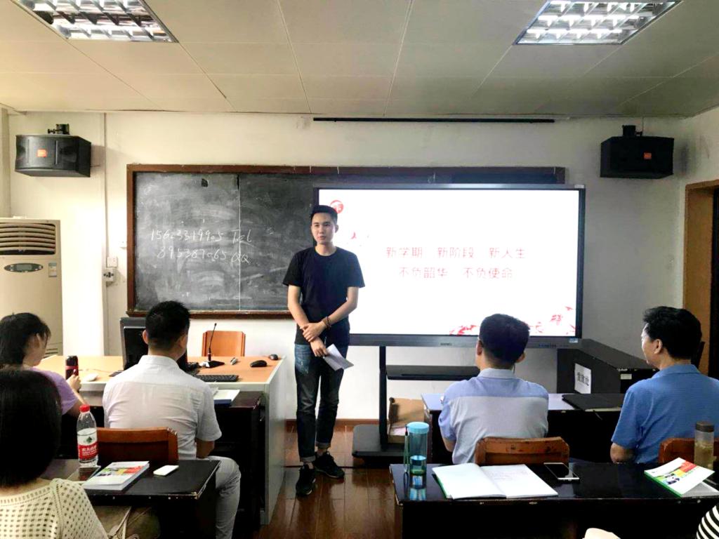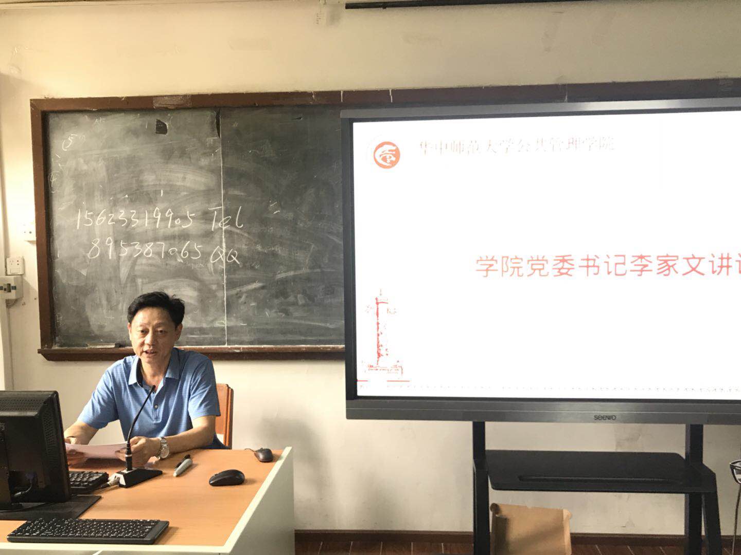 公管在线讯(通讯员:洪雅咏)9月13日下午,我院2018级研究生新生教育暨党支部成立大会在学院三楼会议室召开。会议由18级年级主席蔡大伟主持,学院党委书记李家文、院长卢新海、研究生教务办公室欧阳铮、辅导员魏寅以及兼职辅导员王晓丹出席会议,全体18级博士和硕士研究生参加会议。
