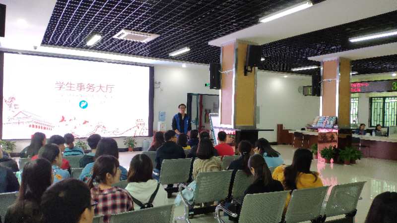 为了帮助研究生新生更好的了解,学生事务大厅的工作人员为我们播放了学生信息化宣传片。宣传片为我们介绍了许多网上信息化功能,包括我们使用过的新生网上自助报道系统,还有一些网上教学的平台。宣传片观看完毕后,学生事务大厅的工作人员为我们介绍了大厅的具体情况。学生事务大厅内含学工部、研究生院等多个常驻部门,为学生提供一站式服务。学生事务大厅设有14个窗口,包含7个常驻窗口,7个轮值窗口。各单位业务实行叫号排队办理,并由服务对象完成满意度评价。另外,大厅南面设立自助服务区。服务区将为学生提供自助打印、复印,一卡通圈存机,自助存取款机,电子储物柜等设备。事务大厅内常驻部门包括学工部、研究生院、就业工作处、教务处、 校团委、后勤集团与财务处,保证有关于常驻部门的相关事务及问题能够得到办理与解决。