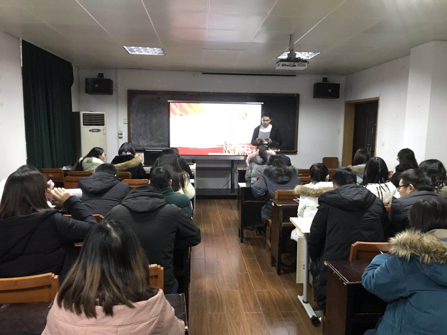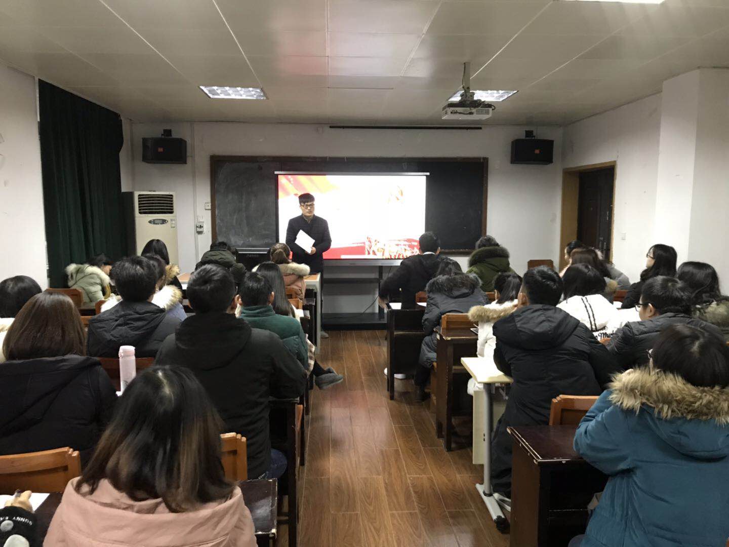 会议最后,18级研会主席蔡大伟作总结发言,并预祝大家寒假快乐。至此,本次期末集中大会圆满结束。(摄影:董辰)