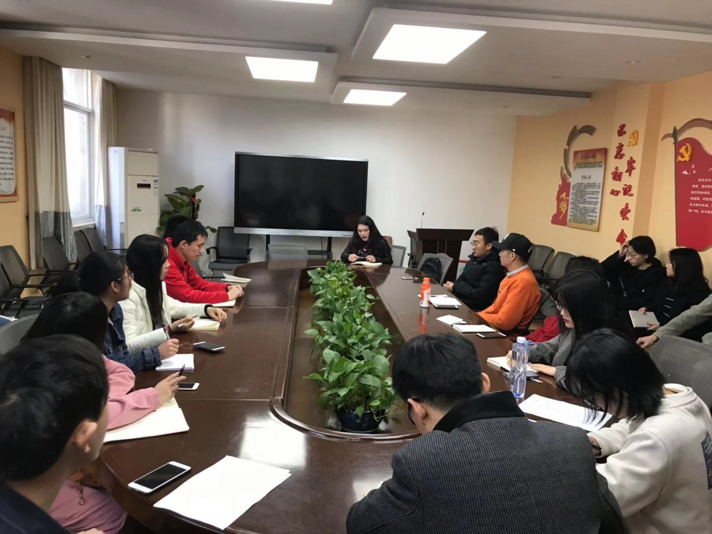 例会第二项,以分团委副书记冉鹏程以及组织委员张丽为代表,向研究生会成员传达“两会”精神,学习习近平总书记在庆祝改革开放40周年大会上的重要讲话并了解“两会”热点问题,旨在引导研究生们密切关心国家的热点时事,用实际行动践行两会精神,坚持正确的政治方向指引,不断提升自身作为新时代社会主义建设者和接班人的责任感和使命感。