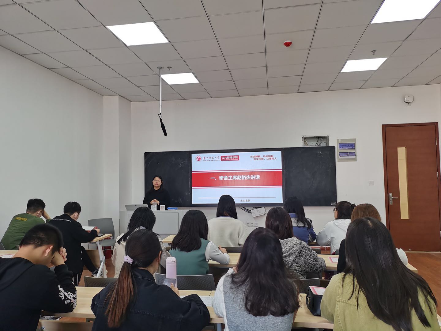 其次,各部门总结了该月的主要工作,详细地介绍了本部门的活动开展情况,并对未来一个月的工作进行了规划和安排。最后,由研究生会主席赵裕杰作会议的总结发言,她肯定了近期研究生会各部门的工作,希望各部门能够继续保持工作热情,创新部门活动内容和形式,并重点提到在之后的工作中会加强与各部门的沟通和交流,及时掌握各部门工作开展情况,密切部门与主席团之间的联系。