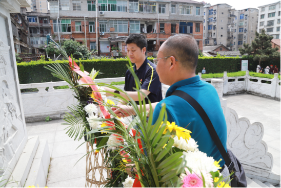 我院师生来到英山烈士陵园祭奠先烈,缅怀为中国解放事业英勇献身的革命烈士。教职工第二党支部书记韩璟、教职工第三党支部书记张奎力向牺牲英烈进献花篮,院党委书记揭辉、院长卢新海整理挽联。之后,教职工第一党支部书记冷向明带领全体师生重温入党誓词。全体党员高举右手,用庄严的声音,表达不忘初心、牢记使命、永远跟党走的坚定信念。全体师生向牺牲英烈献花,并瞻仰纪念碑。
