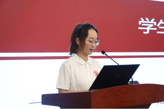 青年志愿者协会会长王丁川介绍了我院七支实习实践队伍的组队情况,并代表全体学生表达了在活动中有所感、有所悟、有所得的决心。孙蕊作为暑期社会实践的学生代表发言,她就珍惜、激情、专业三个关键词与同学们共勉,号召同学们在实践中学有所获、学有所得。