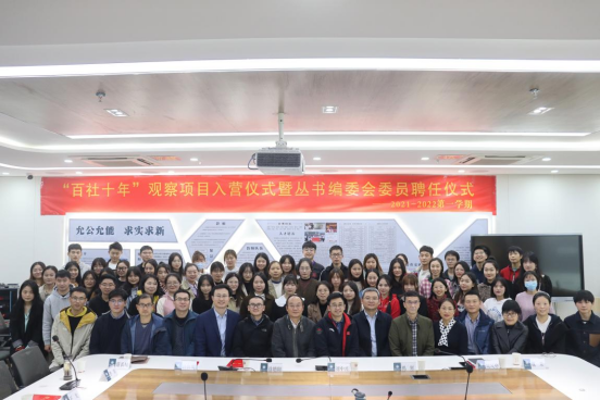 公管在线讯(通讯员:岳晟达、王亚星、吴贻晗、王贤、曾爽)2021年10月20日,“百社十年”观察项目2021年入营仪式暨丛书编辑委员会委员聘任仪式在南湖综合楼9002会议厅举行,社科处副处长刘中兴,公共管理学院党委书记揭辉、副院长徐增阳莅临会场,团队指导老师冷向明、周凤华、费军、徐军玲、陈刚华、张奎力、谢胜华、魏来、蔡长昆、王戈、李伟、董明媛等12位老师及60余位硕博研究生、本科生同学参加本次会议。会议由我院2021级博士研究生陶珊珊主持。