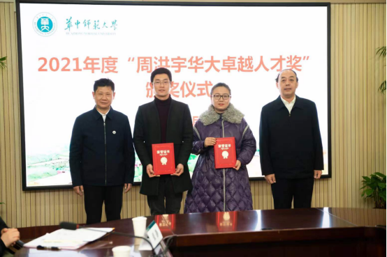 “周洪宇华大卓越人才奖”由华中师范大学校友周洪宇先生发起并出资设立,旨在奖励我校师生在教学科研与社会服务等方面取得的卓越成绩,激发创新与创造热情。本奖项每年评选一次,用于奖励在专业学习、学术科研、社会活动等方面表现特别突出的学生(本科生、硕士生、博士生、留学生各1名),以及在学术科研、教育教学等方面表现特别突出的青年教师(文、理科各1名)。