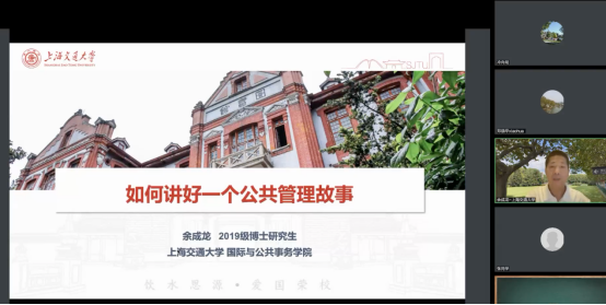 余成龙博士持续研习和使用定性研究方法,尤其是案例研究和口述史调查基础上的历史分析,注重从田野调查中发现实践问题并对接学理性问题,多次参与MPA案例大赛的指导,他以“如何讲好一个公共管理好故事?”为题引发思考,并从“何为好故事?”“如何获得完整的故事?”“如何选择理论视角?”及“如何讲述故事?”四个层次进行分析。他认为,一个“好故事”需体现社会公共价值及背后深层次的结构困境,需要运用公共管理知识呈现治理过程。他基于过往的“田野”经验,从“故事过程”“角色互动”“关键细节”及“场景记录”四个方面提出了“获取完整故事”的建议。他表示,在分析案例时,同学们可以运用“提问法”选择契合的理论,处理好理论与结构的关系,将访谈话语摘录放在合适的位置,从而做到更精彩地“叙事”。