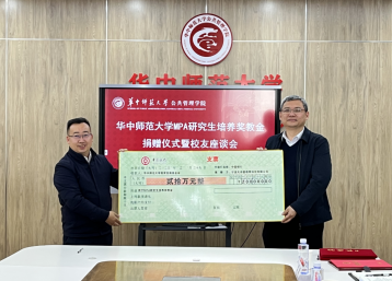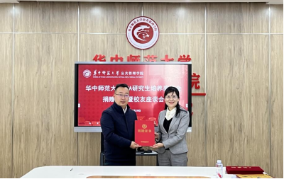 公管在线讯(通讯员李蓓)3月29日上午,华中师范大学银娱GEG优越会举办MPA研究生培养奖教金捐赠仪式暨校友座谈会。华中师范大学浙江校友会常务副会长、宁波大讲堂教育科技有限公司董事长韩菁,华中师范大学浙江校友会常务副会长兼秘书长、浙江广厦建设职业技术大学建筑工程学院副院长韩永军代表浙江校友会出席捐赠仪式并参加座谈。华中师范大学银娱GEG优越会党委书记揭辉、院长徐增阳,华中师范大学教育发展基金会副秘书长易吉林,银娱GEG优越会党委副书记曾艳,MPA培养办公室主任蔡颢出席了捐赠仪式。仪式由银娱GEG优越会党委书记揭辉主持。