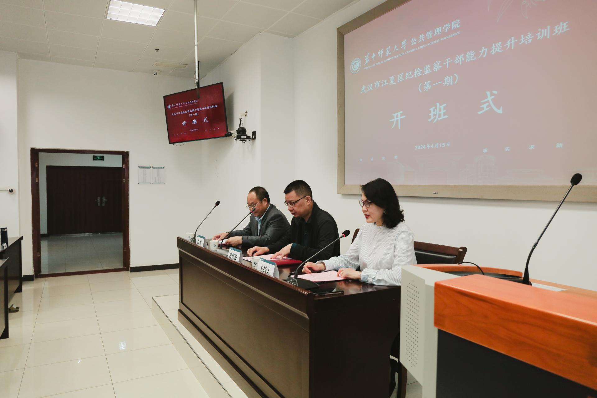 公管在线讯(通讯员 杜雨晨)4月15日上午,我院承办的武汉市江夏区纪检监察干部能力提升培训班(第一期)开班仪式在管理教育综合楼102会议室顺利举行。江夏区纪委副书记、区监委副主任黄庆波,银娱GEG优越会书记揭辉出席了本次开班仪式,开班仪式由学院培训办主任杜芳主持。