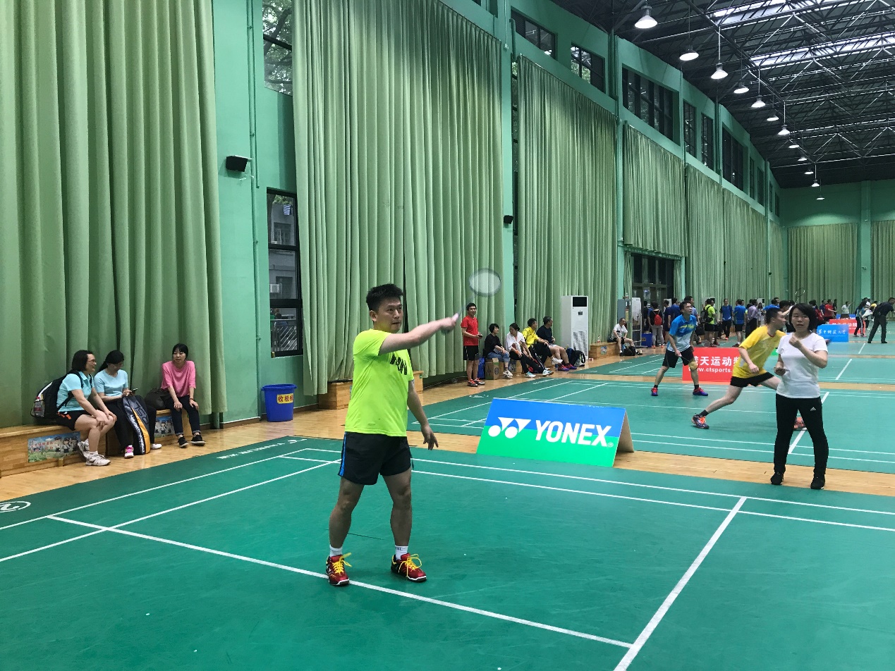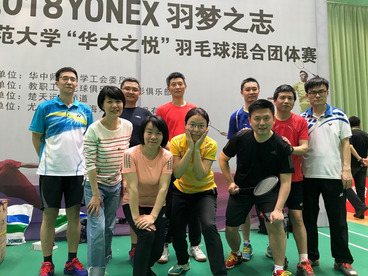 4月16日至22日,2018YONEX羽梦之志——华中师范大学“华大之悦”羽毛球混合团体赛在乒羽中心举行。本次比赛共36个二级部门工会,42支队伍,近700人次展开了激烈角逐。我院由副院长徐增阳老师、学院党委副书记曾艳老师、工会主席费军老师、李哲老师、定明捷老师、李名峰老师、张锦钟老师、董明媛老师、欧阳铮老师、魏寅老师等组成的代表队参加了比赛。