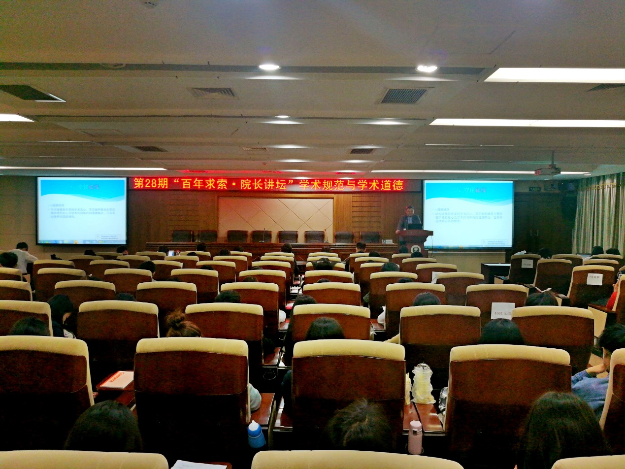 本场讲座,徐教授主要围绕“守住底线”和“心怀高远”两部分展开。在“守住底线”部分,徐教授根据教育部的相关文件和我校研究生指导手册的相关规定,列举了几种常见的学术不规范行为,并用实例加以阐述。徐教授生动形象的案列使得同学们在轻松愉快的氛围中体悟到学术不端的危害。随后,徐教授又指出应从“道德底线、法律底线、制度底线”三个方面采取针对性措施应对学术不规范。在“心怀高远”部分,徐院长勉励同学们敬畏学术,不以恶小而为之;追求学术,不积跬步无以至千里。在提问环节,同学们踊跃提问,面对大家心中的疑问,徐院长给出了切中要害的解答。特别对于同学们“如何在研究过程中培养问题意识”的问题,徐教授从“积极阅读积累”和“丰富人生阅历”两方面给出宝贵建议,引得现场阵阵掌声。