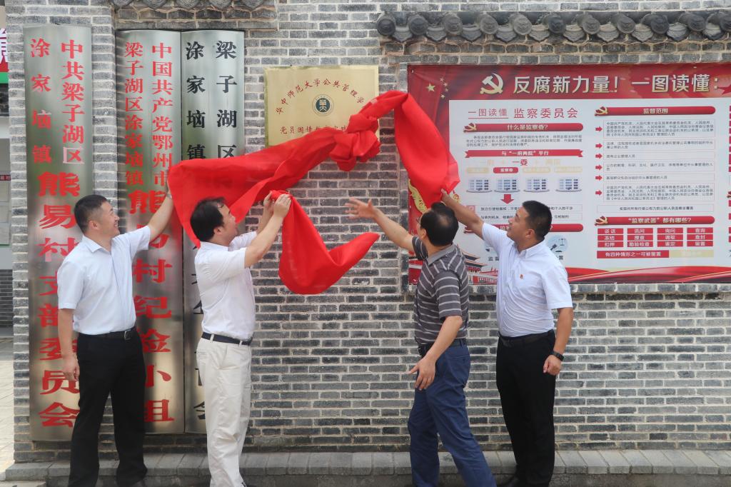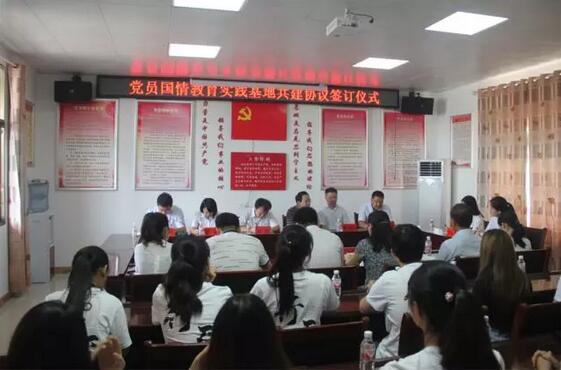 曾艳副书记和范爱国书记签署了建立党员国情教育实践基地协议书,并为范书记颁发了实习实践导师聘书。连海江副部长、徐辉部长、戴胜利副院长,范爱国书记共同为基地揭牌。全体人员还参观了熊易村乡村记忆馆、党员活动室。