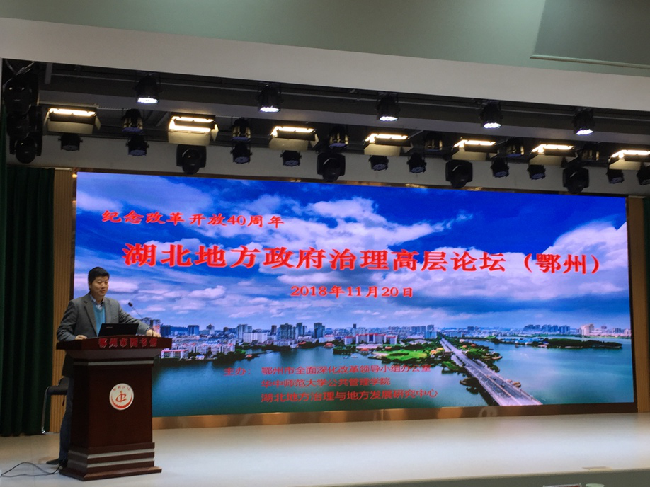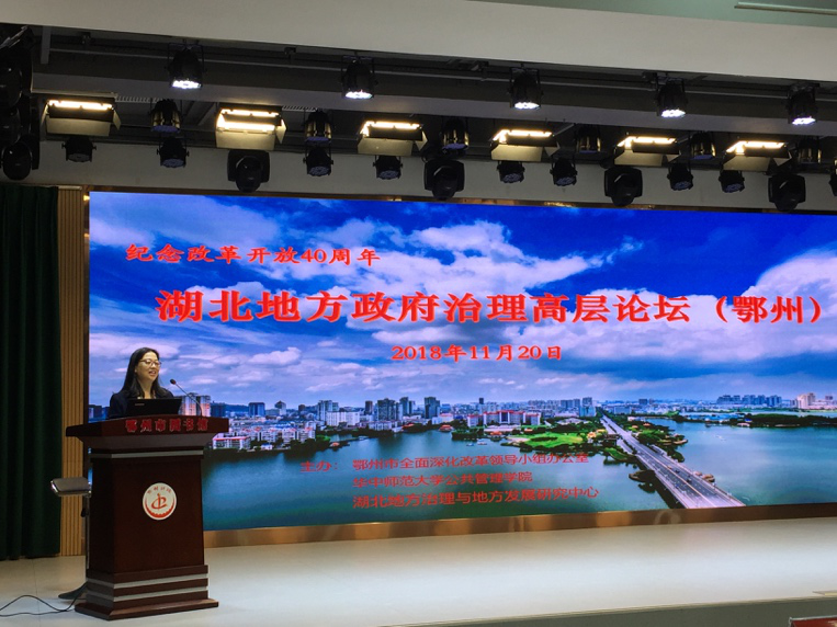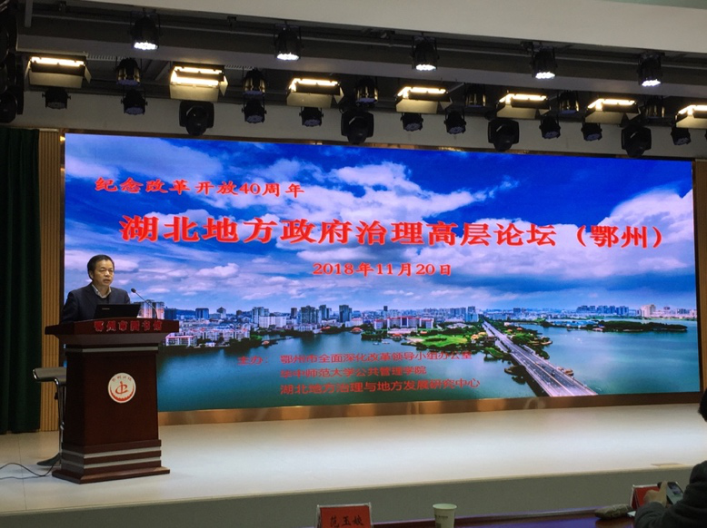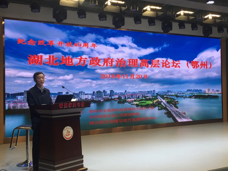 公管在线讯(通讯员:郭淑云)11月20日,首届“湖北地方政府治理高层论坛”在鄂州市图书馆举行。本届论坛由华中师范大学银娱GEG优越会、湖北地方政府治理与地方发展研究中心与鄂州市全面深化改革领导小组办公室联合举办。参加的论坛的嘉宾和人员有:鄂州市委副书记、政法委书记熊明新,校长助理任友洲,省改革办规划处处长施伟,鄂州市委副秘书长、市改革办主任范玉姣,鄂州市政府副秘书长、研究室主任胡民强,华中师范大学银娱GEG优越会党委书记揭辉,华中师范大学银娱GEG优越会院长卢新海,华中师范大学银娱GEG优越会专家学者,鄂州市人大办公室、市政协办公室、市纪委监委、市委组织部、市民政局、市交通局、市商务局、市国资委等鄂州市直相关单位,鄂州市各区、开发区(新区)、街道等60余家单位代表,共计100多人。