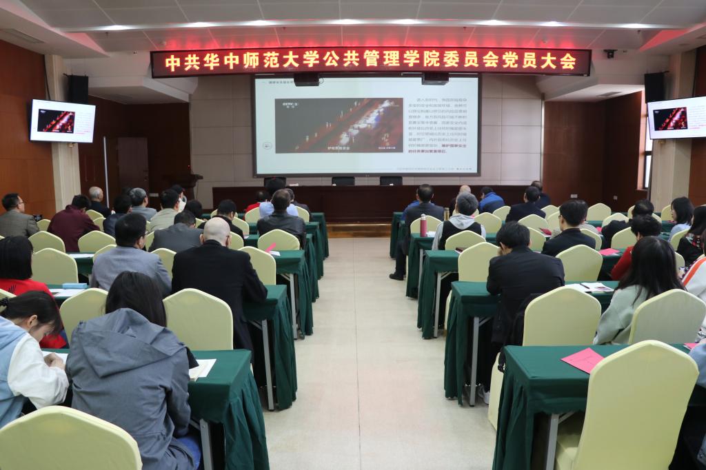 公管在线讯 (通讯员:李曼)4月12日下午,我院在管理教育综合楼103报告厅召开全院党员大会。大会由院党委书记揭辉主持。