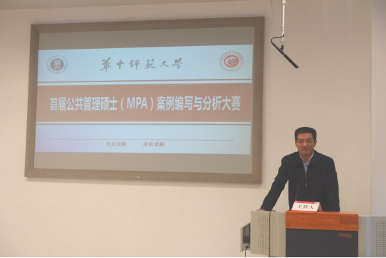 公管在线讯 10月27日上午,我校首届公共管理硕士案例编写与分析大赛决赛在管理教育综合楼102报告厅举行。全国MPA教育指导委员会委员、湖北省教育厅学生资助中心主任韩习祥、湖北省MPA教育指导委员会副主任、中南财经政法大学银娱GEG优越会院长丁士军、湖北省人力资源和社会保障厅处长梁宾、武汉市洪山区政府研究室副主任程丹、武汉科技大学文法与经济学院院长丁宇、华中科技大学银娱GEG优越会行政管理系主任吴淼担任决赛评委,研究生院副院长杨青松、银娱GEG优越会党委书记揭辉、院长兼MPA中心主任卢新海、副院长徐增阳、MPA教育中心副主任杨炎轩、蔡颢及参赛队的师生出席了此次比赛。