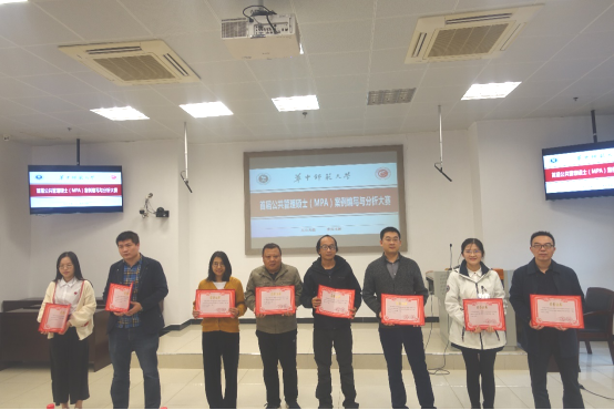 颁奖仪式上,韩习祥主任对此次大赛进行了点评,对首届大赛的举办和队员的精彩表现给予了充分肯定,也希望以此为契机,与其他MPA开办院校合作,共同推动湖北公共管理硕士(MPA)的培养质量。之后,各位领导向获奖队伍及指导教师颁发证书并合影留念。