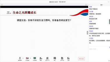 课程介绍了新冠肺炎日前疫情,抗击新冠肺炎疫情的中国行动,与疫情相关生命数字介绍。第二部分为介绍战疫中的生命故事,如穿山甲数量锐减、李悦的家庭,协和江北医院医师故事。第三部分讲述生命之光照耀成长,倡导同学树立整体的、科学的,崇高的生命观。课程讲授结束后,同学们交流了自己的想法和建议。18级同学王宇表示,以后要改掉熬夜的坏习惯。19级同学曾采艺表示,通过此次疫情体会到了生命的珍贵,在以后的生活中要早睡早起、健康生活。李立老师听完课程后,也满怀期待的说,“三月的桂子山是最美的,芽绿花开,春意盎然,希望疫情早日结束,我们能够早日“回家”,让生命在桂子山的片段绽放出最亮的光芒。”