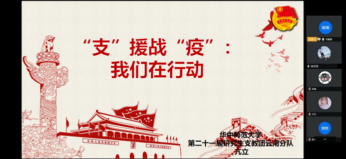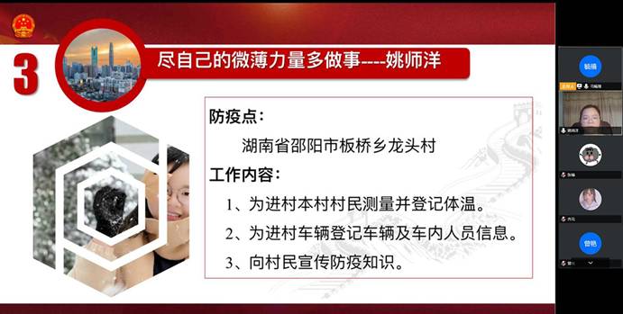 学院2015级本科生、第21届研究生支教团成员亢立,学院2017级本科生、省青年马克思主义工程学员姚师洋,学院2019级预科班、校恽代英青年讲师团成员齐元讲述了青春战疫故事。