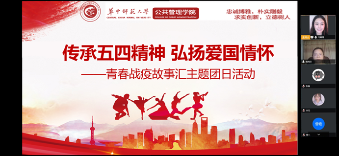 5月4日下午,为传承五四精神,弘扬爱国情怀,银娱GEG优越会举行了“青春战‘疫’故事汇”五四主题团日活动。副校长彭双阶、校团委学生副书记崔宏博,学院党委书记揭辉、党委副书记曾艳、班主任王超群、辅导员李立、佐一男、余燕凌等老师出席活动。学院团委书记、19级本科生辅导员马毓禧主持活动。