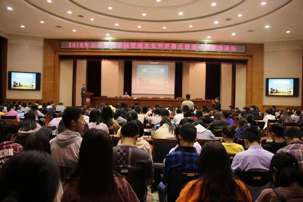 公管在线讯 (通讯员 金慧颖)10月28日晚,银娱GEG优越会第七届管理文化节开幕式暨第一期管理讲坛在科学会堂举行。教育部第74期中南班学员、贺州学院文化与传媒学院副书记、副院长蒲日材,银娱GEG优越会副院长戴胜利,银娱GEG优越会党委副书记曾艳,银娱GEG优越会辅导员李立,银娱GEG优越会团委书记亢立、兼职辅导员孙静竹,以及学院2017级、2018级本科生和预科生参与了活动。银娱GEG优越会学生会主席、团委副书记薛爽主持开幕式。
