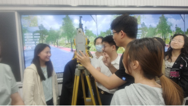 同学们体验全站仪使用