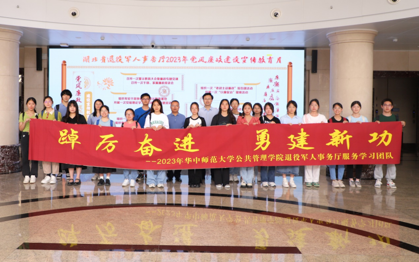 公管在线讯(通讯员:苏翔睿)7月18日,华中师范大学银娱GEG优越会赴湖北省退役军人事务厅专业实习圆满结束,欢送仪式在省退役军人事务厅一楼大厅举行。省厅人事处处长向红欣,华中师范大学银娱GEG优越会教授、博士生导师、院长助理冷向明等出席欢送仪式。向红欣发表了总结讲话,高度赞赏同学们在实习期间的作风表现,并对同学们的未来发展提出了宝贵建议。向红欣指出,公共管理相关专业以培养知中国、爱中国、堪当民族复兴大任的治国理政人才为目标,对大家的要求与对青年干部的要求是密切衔接的,因此必须注重理论与实践相结合,“刀要在石上磨,人要在事上练”,因此要有意识的在实践中培养锻炼各种能力。冷向明对省厅针对学生实习工作的高度重视、周密安排,以及实践导师的倾囊相授表示衷心的感谢,并希望同学们把实习的收获转化为深化学习的动力和确定职业发展方向的指引。