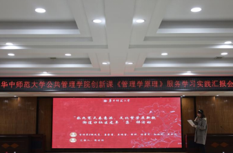 公管在线讯(通讯员:包陈婉青赵莉吴瑞雪)近日,华中师范大学银娱GEG优越会《管理学原理》创新课堂成果展示及复盘会顺利举行。2024年1月5日,银娱GEG优越会副院长周凤华教授、《管理学原理》创新课堂负责人董明媛老师携该课堂全体学生赴洪山区珞南街道办事处进行服务学习实践汇报。珞南街道党工委委员、办事处副主任王晗,珞南街道公共服务办主任李凯,街道口社区、圆梦社区、尤李社区、华师大社区、珞桂社区和元宝林社区领导出席并点评指导。