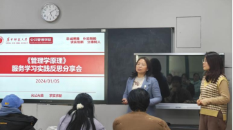 汇报结束后,周凤华老师和董明媛老师带领同学们返回南湖综合楼9006教室,针对课程学习和实践汇报进行了及时的反思复盘。同学们从理论知识、个人成长、公民素养和公共精神等方面分享了他们在《管理学原理》创新课堂中的收获,并反思了自己的不足之处。他们一致认为,创新课堂为他们提供了一个宝贵的机会,让他们能够走出校门,聚焦现实问题,增强了自己的组织协调能力、公共服务意识和专业实践能力。通过与珞南街道的合作,同学们深刻体会到了理论知识与实践操作的结合,为未来的学习和工作奠定了坚实的基础。